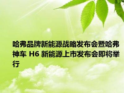 哈弗品牌新能源战略发布会暨哈弗神车 H6 新能源上市发布会即将举行